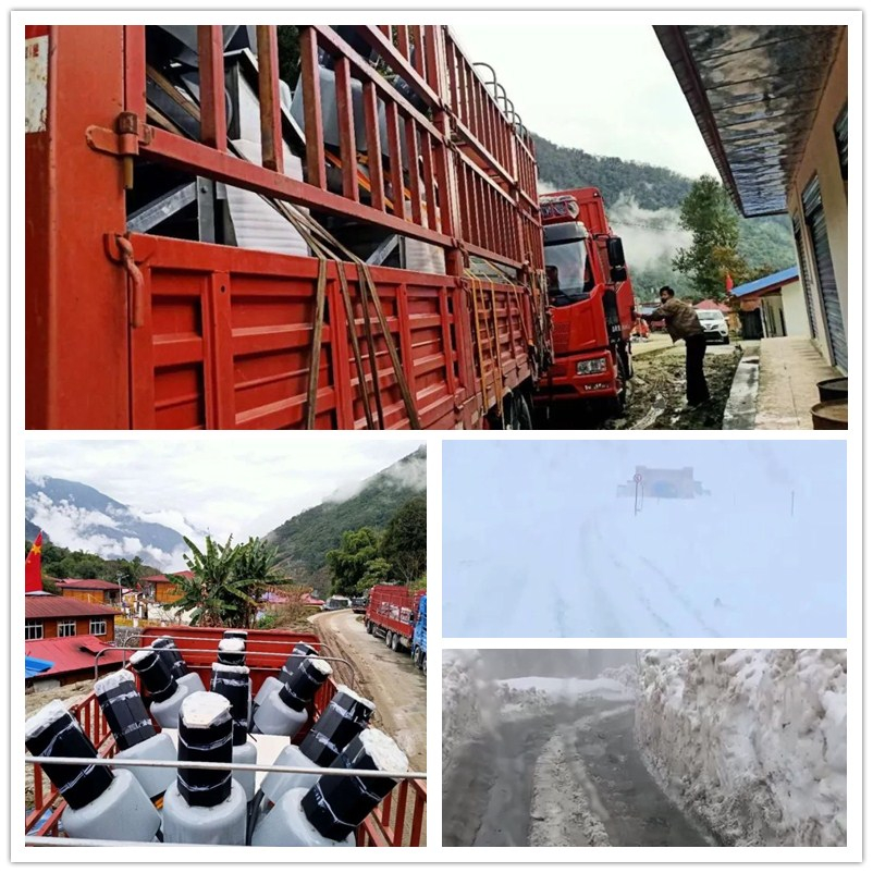 承担了墨脱县达木35千伏扩建工程、格当35千伏输变电工程5台35kVSF6断路器的生产制造任务。在产品运输途中,面对高海拔、极寒、气候多变、路况极差等恶劣环境,通往墨脱的最后一百公里路程往往要走一天一夜。运输队路途中经历了暴雪、泥泞、结冰、无铺装等恶劣天气及复杂路况。遇到雪崩的极端天气,运输车辆只能单行,遇到较窄的路口往往需要多次倒车调整方向才能顺利通行,路况不好时,往往每天只能吃上一顿饭。就是在这种恶劣的条件下,运输队从3月8日启程,经过了8天的艰难前行,终于将产品安全运送到了墨脱达木、墨脱格当工程现场,为确保电站设备安装任务顺利实施奠定了基础。