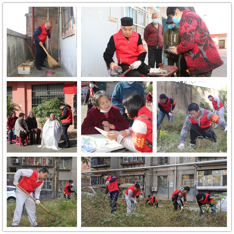 青年志愿者服务队走进老旧小区,高举志愿服务队旗,认真清扫小区道路、整理共享单车、捡拾垃圾烟头、清洁公共设施,同时还免费为社区居民理发、维修小家电、毛衣翻新、智能手机使用问题咨询、免费拍照打印照片等服务,让老旧小区焕然一新。