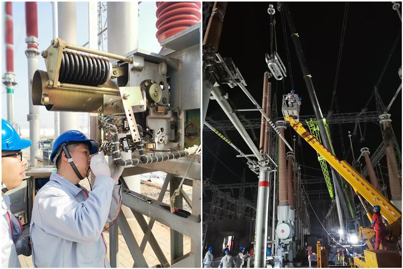 客户服务中心协调组织参与前三阶段的服务、施工人员奔赴现场开展安装工作。每日召开班前会明确目标任务,细化工作措施;施工人员严格按照检修工艺标准作业,精益求精、规范施工,完善作业过程控制;在施工现场,服务人员井然有序保安装,挑灯夜战抢工期,最终零失误、零违章圆满完成改造工作,实现了“进度”“质量”双胜利。3月2日深夜,乾县750kV变电站增容改造项目第四阶段3组产品施工顺利完成,成功送电。
