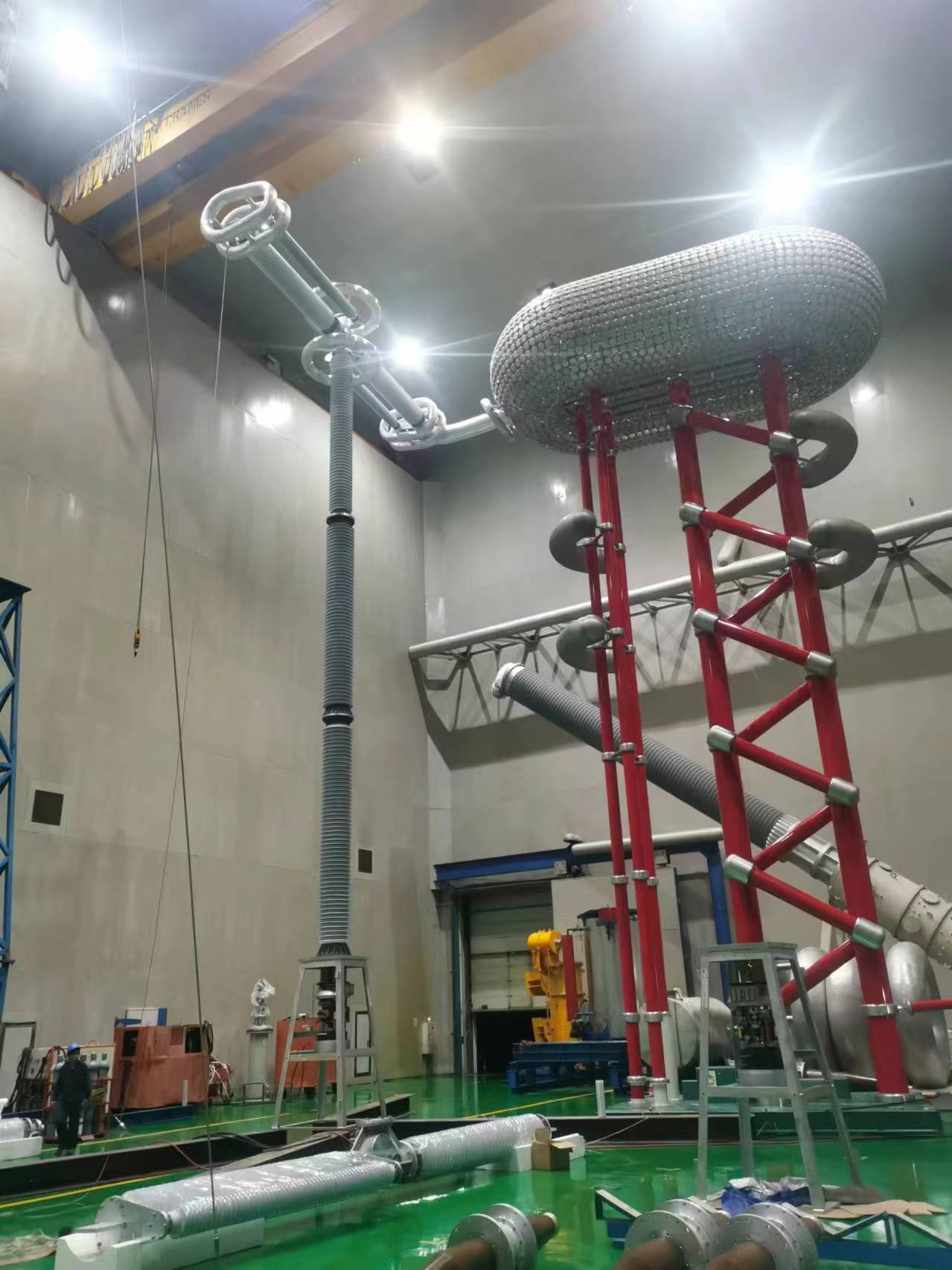 目前的关键直流产品,在408kV/816kV直流旁路开关出厂试验过程中,各部门高度重视,成立“特高压先锋队”,召开专题会动员部署,明确产品物流防护、人员调度、作业安全、工艺纪律、质量保证等细节,充分发挥党支部战斗堡垒和党员先锋模范作用,在持续高温天气环境下连续奋战,最终以顽强的意志、谨慎的作风以及对质量问题“零容忍”的态度确保出厂试验一次通过,为陇东-山东±800kV特高压直流输电工程提供了强有力的设备支撑。
