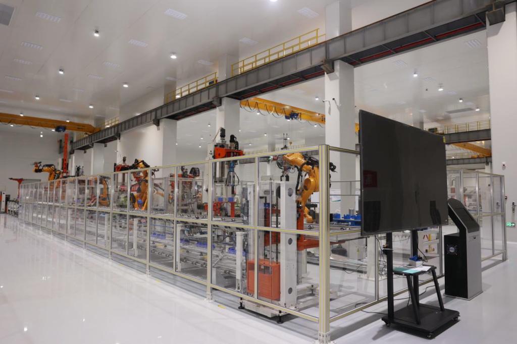 智能化高压开关总装单元智能工厂项目规划建设14条自动化生产线、6组单元化专线、2组柔性作业线,深度融合新工艺、新技术、新材料。聚焦智能装配、智能检测、智慧仓储物流应用三大领域,围绕封闭式/敞开式产品工艺特性,定制双线并行产线集群。其中,126kV GIS示范线表现亮眼:综合自动化率达86%,效率提升112%;创新采用模块化工序重组与数字化自动化装配专机紧密配合,产线整体设备利用率提升127%,释放30%的生产空间,有力推动传统作业模式向高柔性自动化连续流装配转型。