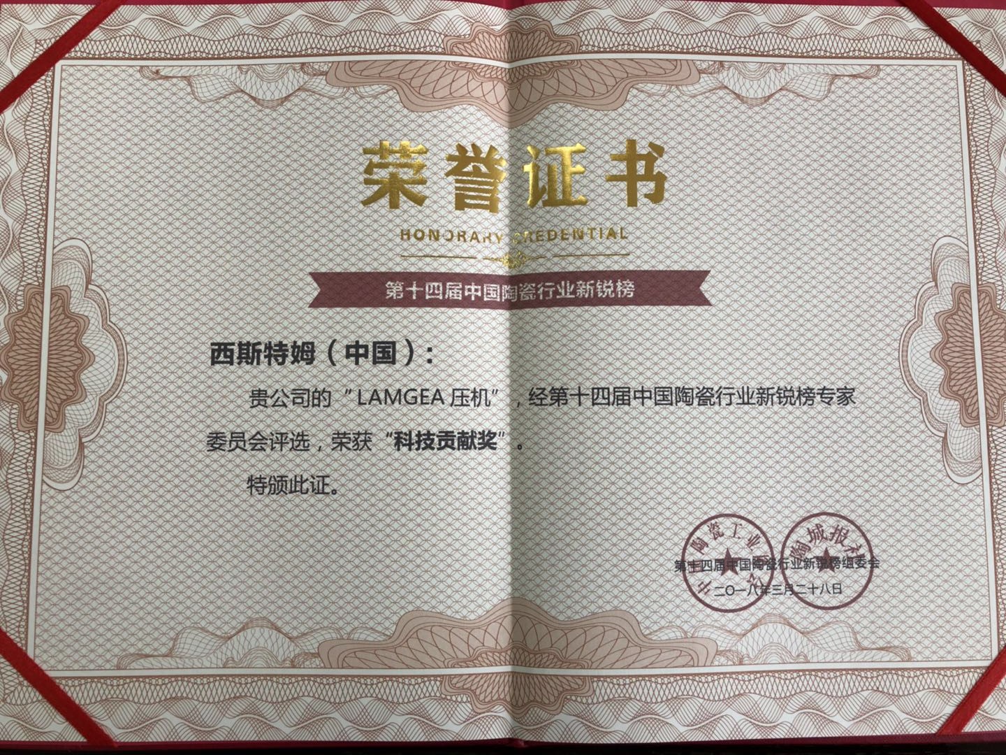 Thanks to the highly skilled engineering and technical departments, System keeps on creating new cutting-edge applications confirming its leading role in paving new ways as Innovator of Process. The award Science and Technology Contribution was received by the Director of Operations of System China, Mr Orfeo Finocchi in Foshan. This recognition shows once again that the high-performing manufacturing processes of System are considered to be a made-in-Italy technological excellence in the field of industrial automation for the ceramic industry.